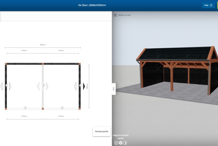 Door middel van de Hillhout 3D-configurator kunt u stapsgewijs een buitenverblijf samenstellen en een uitvoering kiezen. Vervolgens kunt u het buitenverblijf voorzien van alle mogelijke opties. Zo ziet u precies hoe het buitenverblijf eruit komt te zien, wat de kosten zijn en direct een offerte aanvragen.