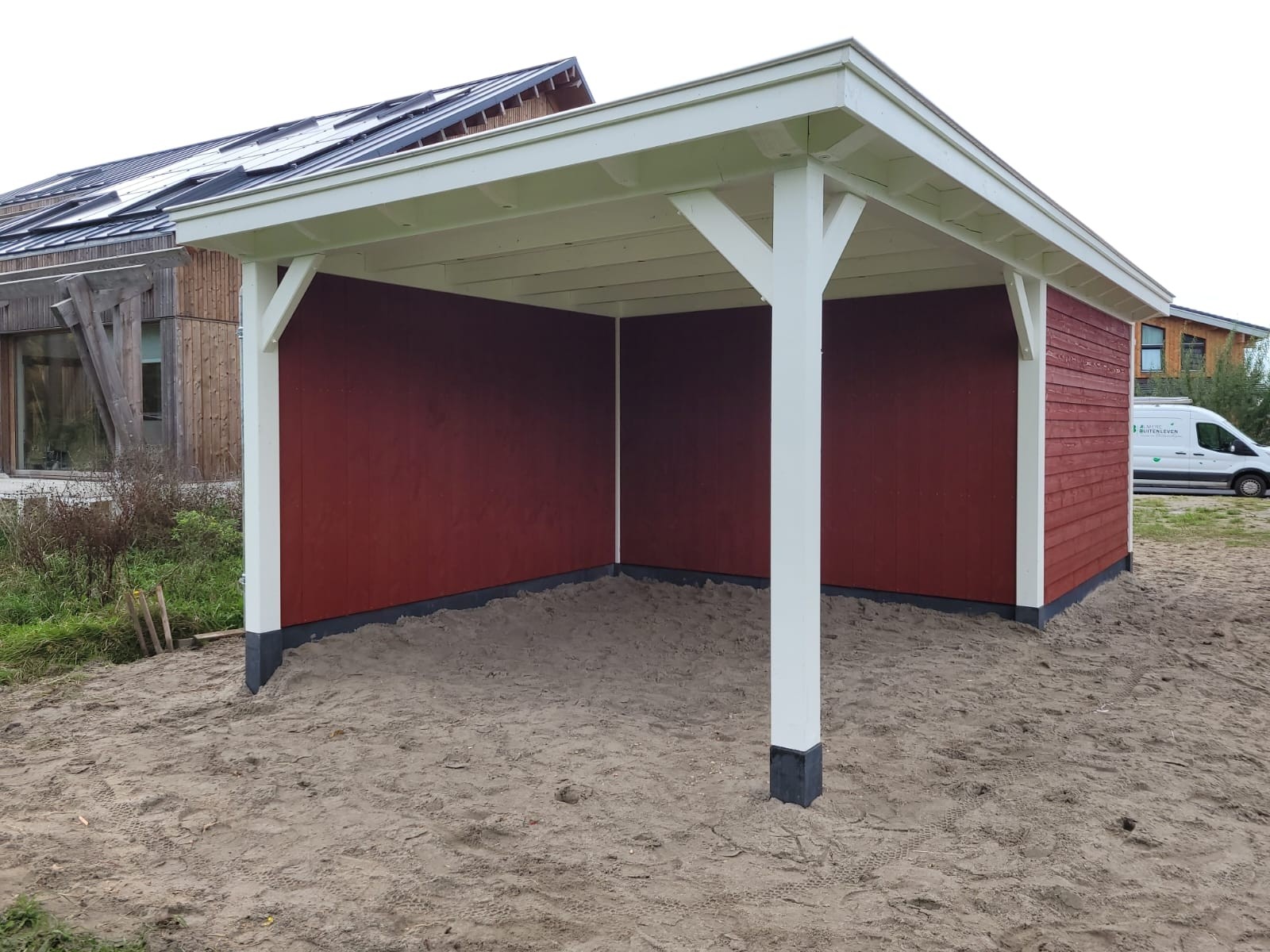 Deze klant heeft een woning in Almere in deze fraaie dieprode kleur. Hoe mooi is het dan een bijpassende garage in de tuin te krijgen. Wij kunnen u helpen met het realiseren van een buitenverblijf in de door u gewenste kleur.