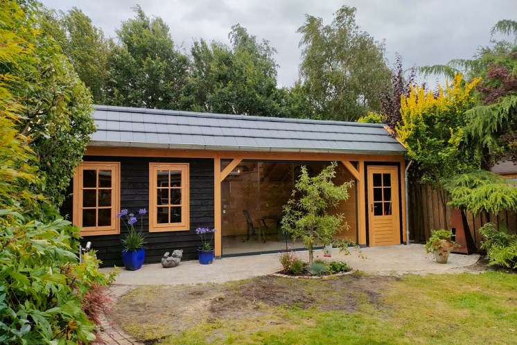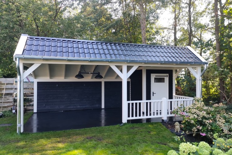 Een kapschuur of zadeldak model? Wij hebben diverse opstellingen gebouwd. Een tijdloze en fraaie combinatie is een wit gebeitste constructie met zwarte wanden.