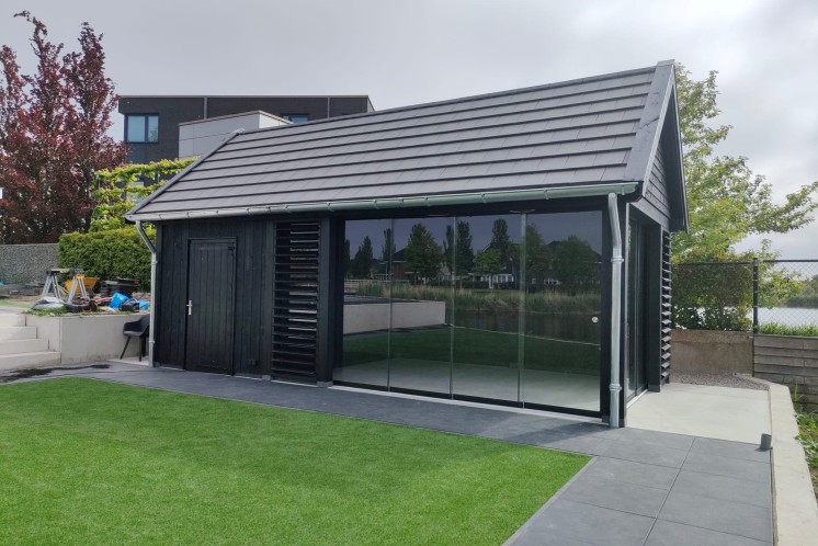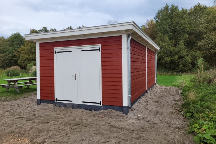 Deze op maat gemaakte overkapping met schuur en verblijfsruimte hebben wij in Almere opgebouwd. In het geheel zijn verschillende ruimtes gecreëerd om zo een multifunctioneel geheel te krijgen.